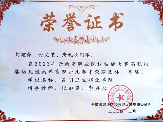 2023年云南省婴幼儿健康养育照护赛项团体赛一等奖
