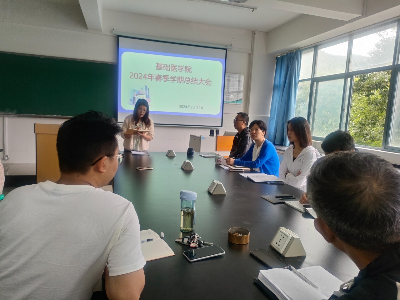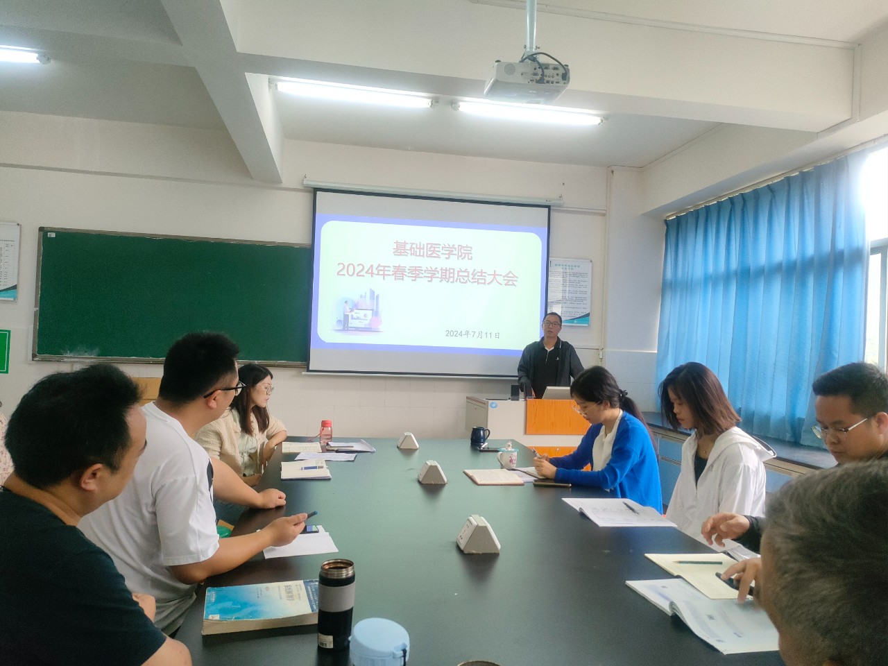 2024年7月11日上午,基础医学院开展了春季学期期末总结大会,会议由党政办主任汤小秀主持,全体教职工参与。