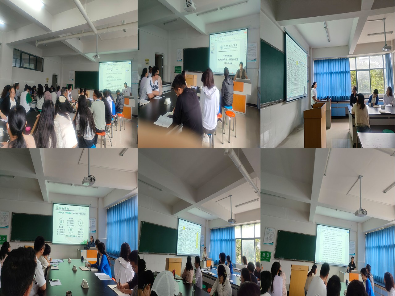 会上,各教研室负责人做总结汇报,主要从期末成绩、教研室结构、科研课题、未来规划等方面阐述,整体对比后得知学生成绩较以往有所提升。大家分享本学期采取的措施,教师们精心备课,充分利用自习课时间进班悉心指导,使学生们取得了长足进步,成绩稳步提升;同时,学校采取教师、辅导员协作等方式,加强了学生的管理,教师们对不同班级采用不同的教学方法,丰富课堂教学形式,提升了学生的学习兴趣和参与度。