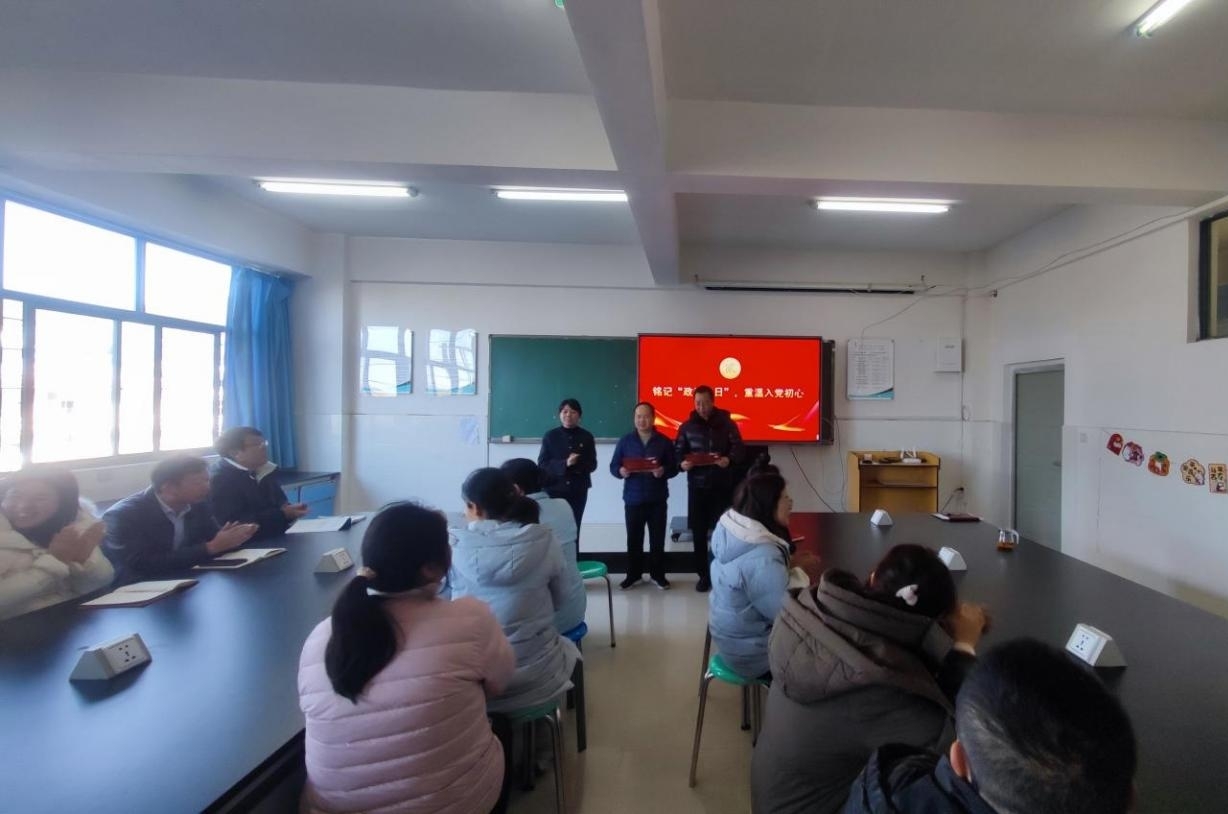 “我志愿加入中国共产党,拥护党的纲领,遵守党的章程—— 在铭记政治生日、重温入党初心环节,活动氛围庄重而热烈。主持人宣布了本次过 “政治生日” 的党员名单,党支部书记为他们逐一送上精心准备的政治生日贺卡,传递党组织的温暖关怀与殷切期望。随后,全体党员起立,面向鲜红的党旗,在院长马鸣同志的带领下,全体党员举起右拳,庄严重温入党誓词。铿锵有力的誓言回荡在活动现场,既是对入党初心的回望,也是对使命担当的重申,进一步强化了党员们的党性观念与责任意识。过 “政治生日” 的老党员代表李正同志动情分享了自己的入党经历、成长感悟与岗位奋斗故事,表达了对党组织的感恩之情,以及立足本职、攻坚克难、勇担使命的坚定决心,引发全场党员的强烈共鸣。