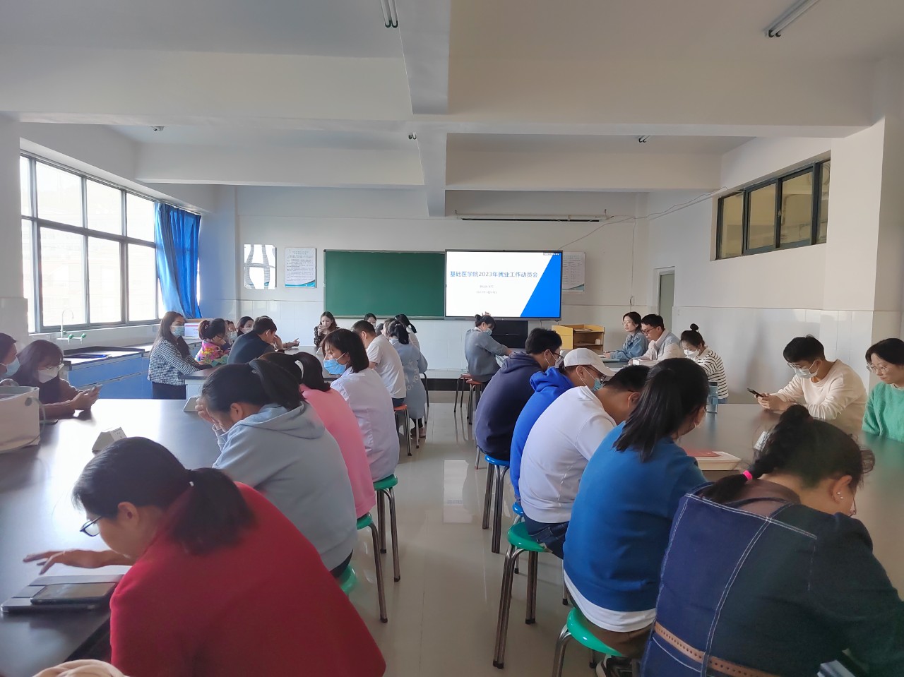 为深入实施就业扩容提质工程,用实际行动践行学习贯彻落实党的二十大精神,落实党中央、国务院“稳就业”“促就业”决策,响应学院的“多部门联动帮扶毕业生促进就业方案”,进一步拓宽毕业生的就业渠道,开拓更多高质量就业岗位,3月24日下午,基础医学院召开了2023年就业工作动员会。会议由基础医学院党支部书记李睿雯主持,护理学院第一党支部书记尹培及基础学院全体教师共同参会。