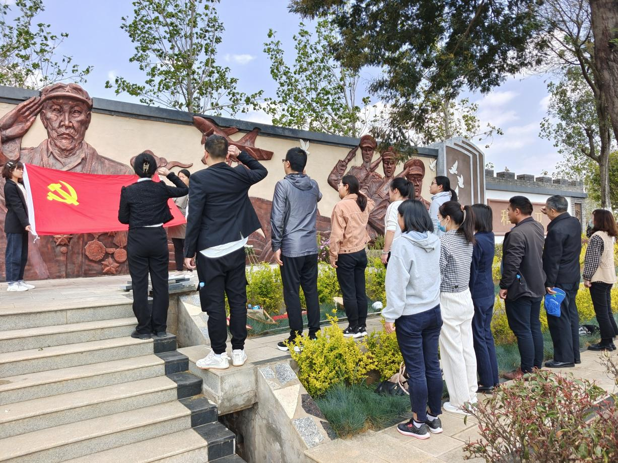 重温历史,悟本思源。3月31日下午,基础医学院教师、党员、入党积极分子,前往晋宁晋福古园爱国主义教育示范基地,组织开展“缅怀革命先烈 坚定理想信念”清明祭扫烈士陵园活动。