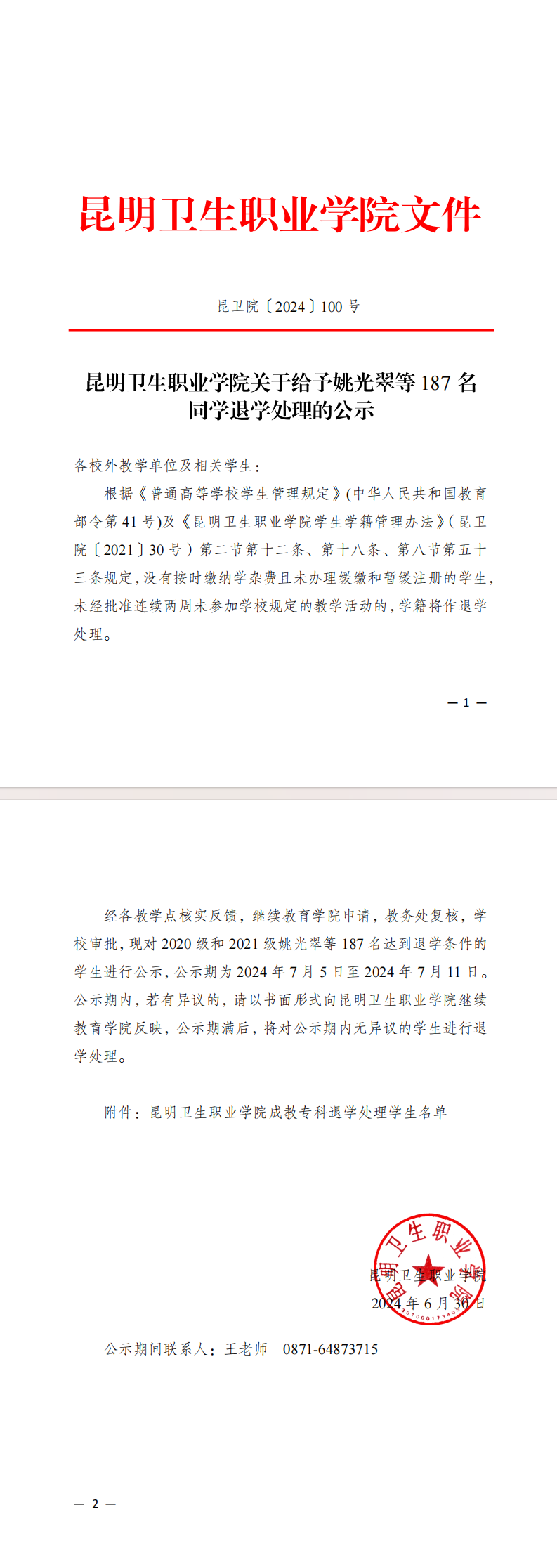今年会官方网站关于给予姚光翠等187名同学退学处理的公示