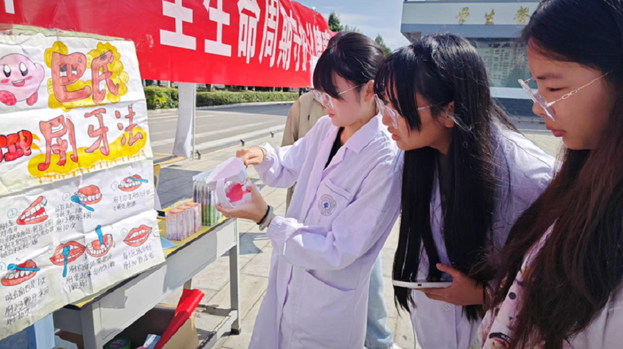 活动期间,口腔协会的成员通过悬挂横幅、口腔知识竞答、学习巴氏刷牙法、宣传口腔知识等活动。讲解口腔健康方面的知识,开展宣传,让同学们积极参与到其中,从而关注自身口腔健康问题,告诉同学们口腔中存在的问题以及怎么预防和治疗。