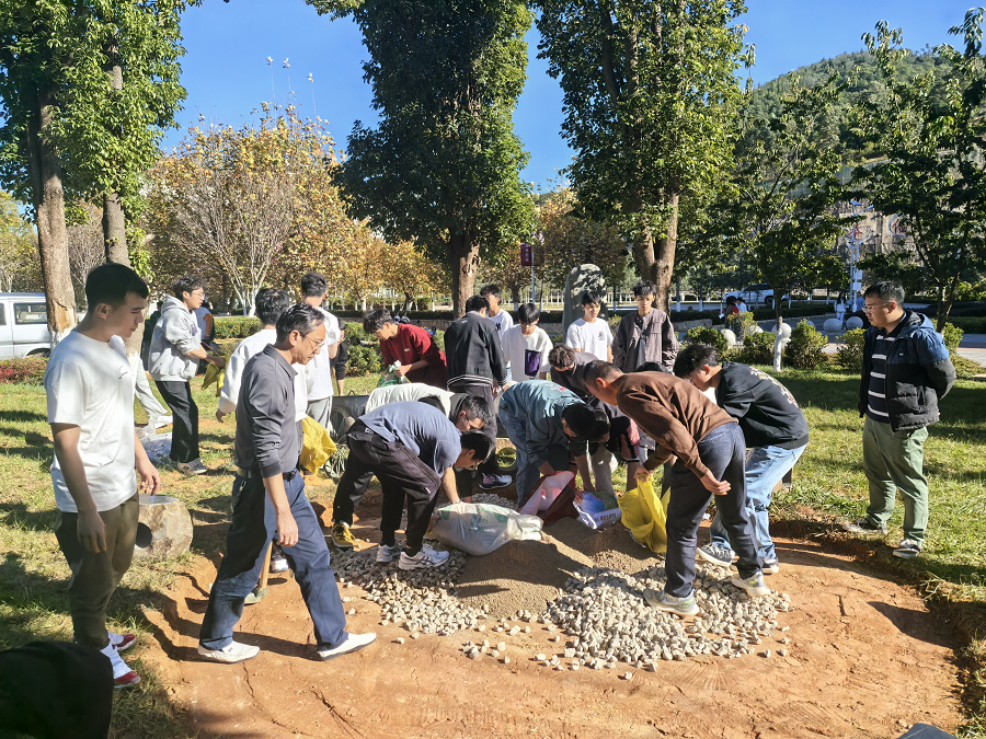 小花园建造项目由口腔学院院长虎志辉、学管副院长骆毅等领导带头开展,口腔学院专任教师、辅导员、各班级学生共同参与。在此次活动中,老师们发挥着引领与规划的关键作用。从布局设计、蓝图绘制、材料选购、施工开展到项目圆满完成,每一个环节老师们都以身作则,亲自带头劳动。学生们则是这片小花园建设中充满活力与创意的主力军。各班级学生利用自习课的时间进行劳动,他们跟随老师一起挖地、刨土、搬砖,不怕脏、不怕累,用双手为小花园的诞生贡献一份力量。