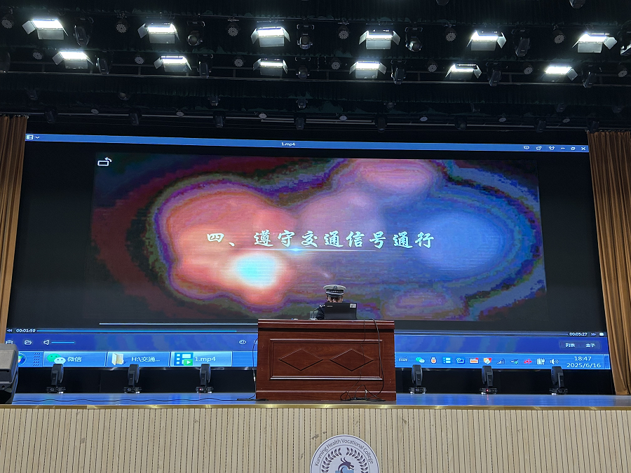 活动伊始,昆明市公安局晋宁分局交通警察大队乔红华警官带来了交通安全宣讲。乔警官通过播放交通事故案例视频、展示事故现场图片,用通俗易懂的语言向同学们讲解了各类交通违法行为的危害。从闯红灯、不佩戴安全头盔到随意横穿马路等行为,一一剖析,提醒同学们在日常出行中要严格遵守交通规则,增强自我保护意识,做到文明出行、安全出行。