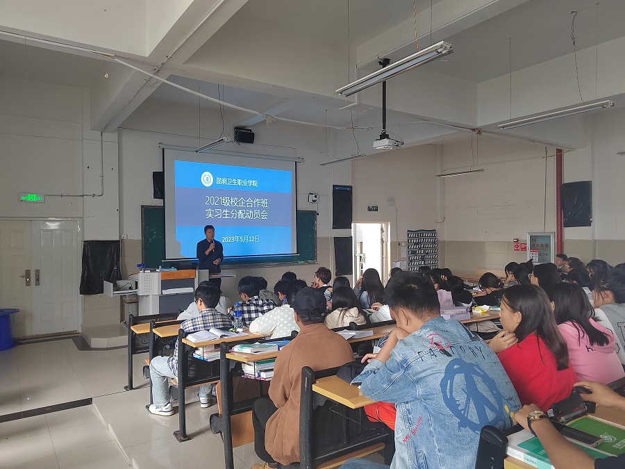最后张晓刚副院长给学生宣布了此次校企合作试点单位名单以及实习名额要求,供同学们双向选择,努力实习人才培养无缝对接,并且讲了实习期间教学管理情况,要求同学每月要完成理论考核,并且会计入毕业考成绩,希望同学们在实践过程并且提升理论学习,为以后得资格考试奠定基础。