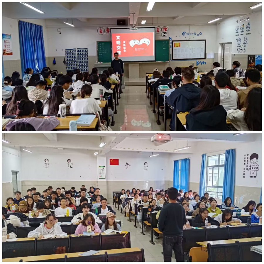 大学生正值懵懂的青春期,对美好爱情的渴望犹如对春天到来的期盼。但彼时学生的价值观念和行为还不够成熟,大部分学生还不懂得如何正确对待恋爱。作为老师,我们在不反对学生谈恋爱的同时,还要对学生展开思想教育,帮助学生正确认识恋爱。为使学生树立正确的恋爱观,文明交往,文明恋爱,口腔学院于2023年11月组织各班级召开了“文明交往”主题班会。