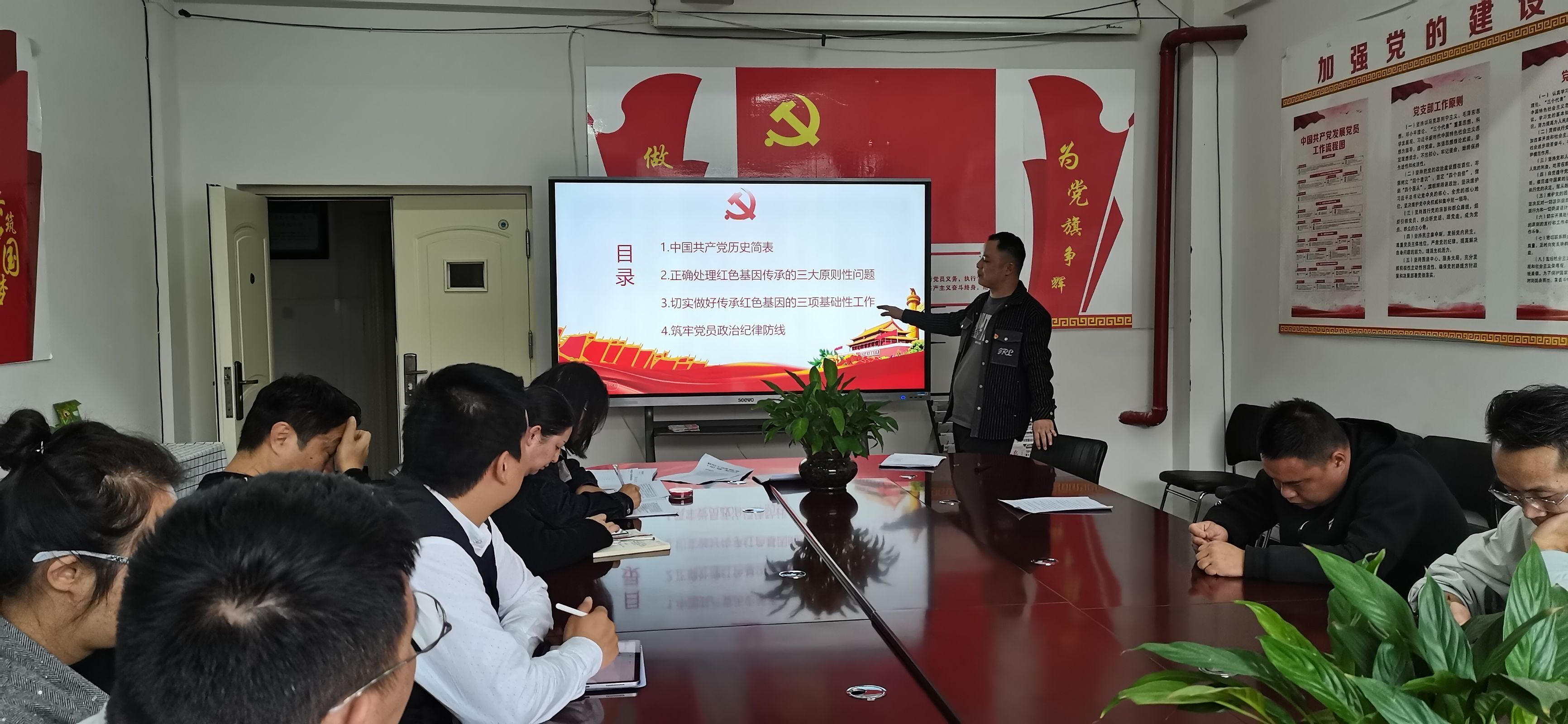 党课中,支部书记余建坤同志首先带领大家回顾了党的光辉历程,特别是革命时期的重要历史事件和伟大事迹。其次深化了红色基因传承,主要讲述中国共产党的奋斗史与中国特色社会主义事业取得的辉煌成就,使支部成员更加深入地理解和认识到红色基因的重要性。最后筑牢了党员政治纪律防线,主要结合当前形势和任务,强调党员应具备的政治纪律和规矩意识,引导大家自觉遵守党的政治纪律和规矩。