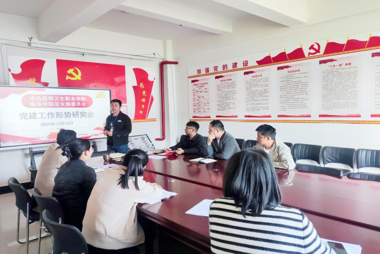 为全面总结回顾临床学院党总支党建工作情况,部署接下来的党建重点工作,推动党建融入教育教学、学生管理之中,2024年10月24日上午,临床学院党总支在临床学院405党员活动室召开了党建工作研究专题会议。临床学院第一支部书记余建坤、临床学院第二支部书记杨林杰、临床学院第三支部陶敬磊及支委委员参加会议,会议由临床学院党总支书记王正安主持。