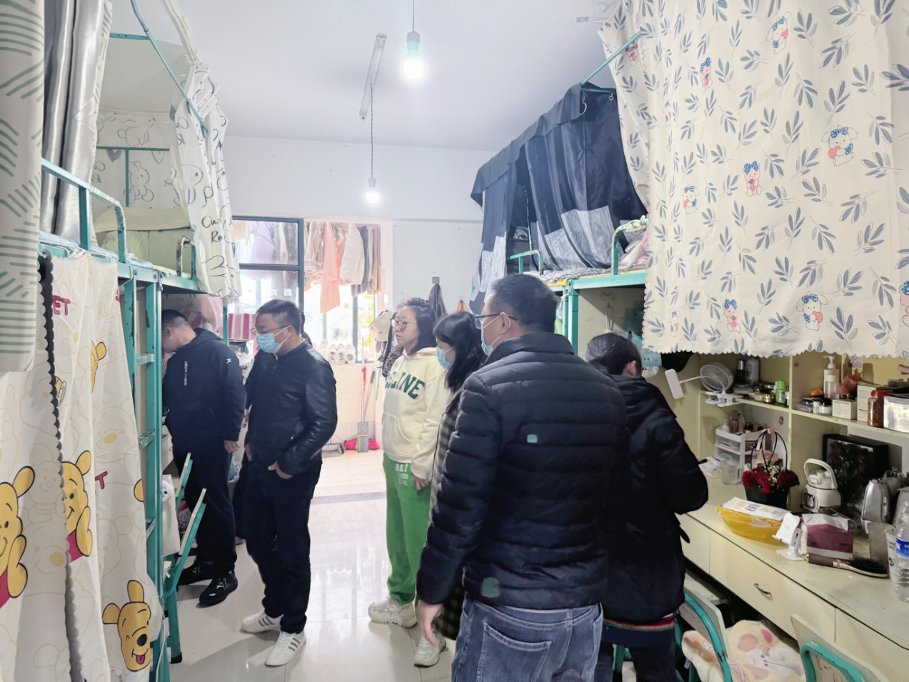 宿舍作为学生学习与生活的重要场所,在校园安全体系中占据着关键一环。为切实加强学生宿舍管理,做到及时发现并消除宿舍安全隐患,全力营造安全、整洁、文明的宿舍环境,2024年12月10日,临床学院第一党支部协同学管办组织开展深入且全面的宿舍安全集中检查活动,由临床学院第一党支部书记余建坤同志带队,全体党员、辅导员及学管办成员共同参与。
