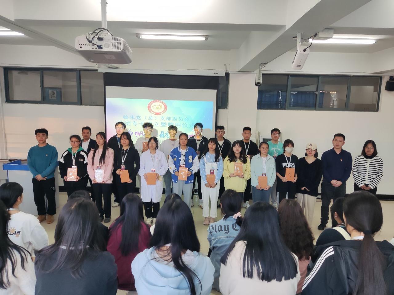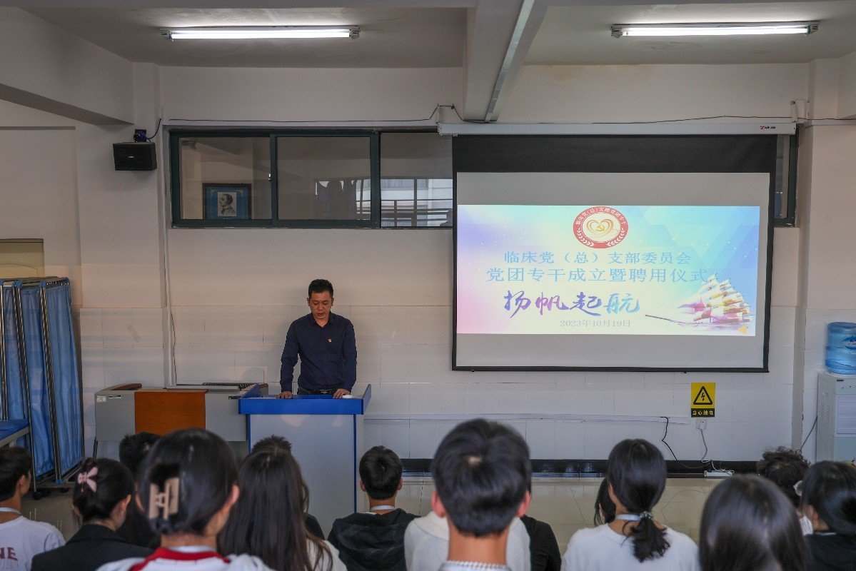 习近平总书记指出“意识形态工作是党的一项极端重要的工作,是为国家立心、为民族立魂的工作”。为深入学习贯彻习近平总书记关于意识形态工作重要讲话精神,强化意识形态,筑牢思想防线,守好意识形态主阵地。2023年10月19日下午,临床学院党(总)支部于临床学院408室组织召开了党团专干成立大会暨聘用仪式,临床学院党(总)支部书记、支委及临床学院学生党团专干参加,本次会议由临床学院第一党支部书记王德昌同志主持。