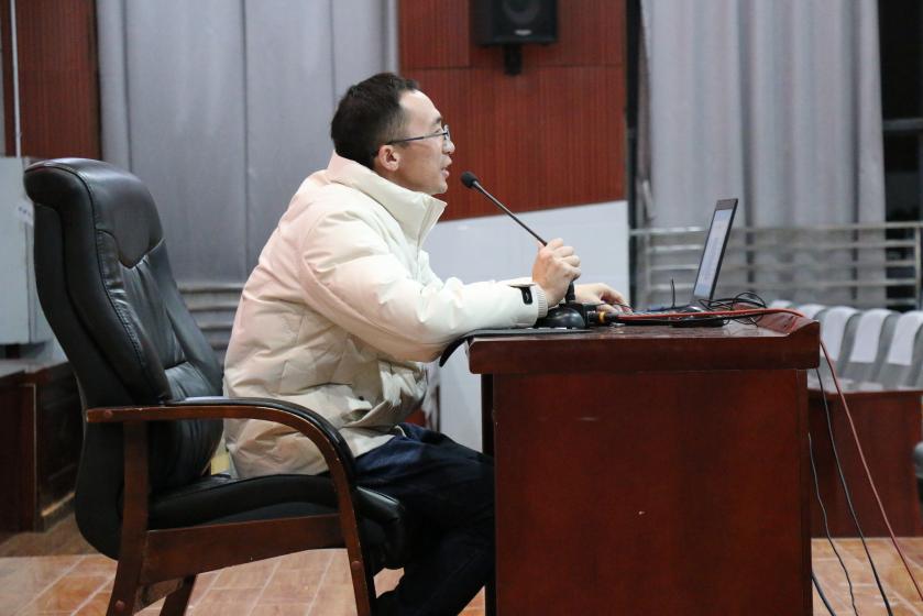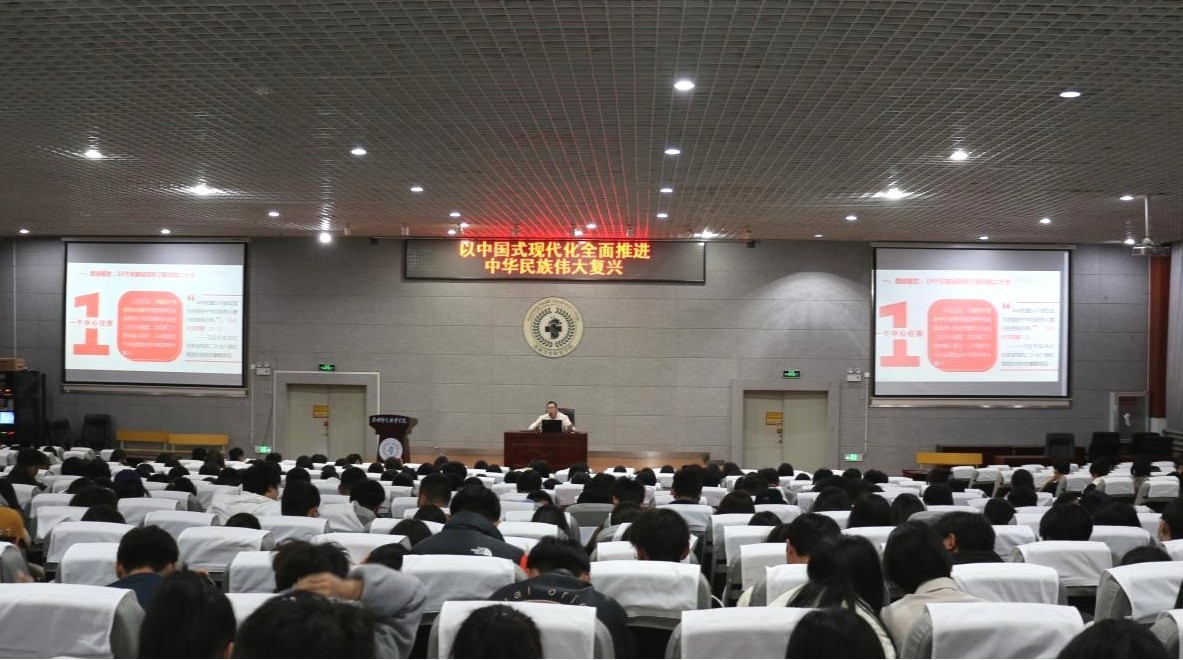 为全面贯彻习近平新时代中国特色社会主义思想,认真落实习近平总书记关于深入学习宣传贯彻党的二十大精神的重要指示精神,用习近平新时代中国特色社会主义思想铸魂育人,厚植青年学生的政治底色。今年会官方网站宣讲团成员,青年教师聂元会于12月11日晚在学术报告厅开展主题为“以中国式现代化全面推进中华民族伟大复兴”的理论宣讲。
