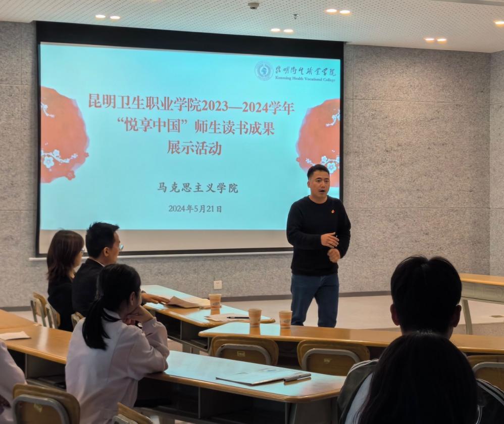为深入贯彻落实习近平对学校思政课建设作出的重要指示指示精神,彰显文化赋能思政课建设的鲜明导向,丰富校园文化生活,提高学生人文素养,营造积极向上、文明尚读的校园文化氛围。5月21下午,马克思主义学院在新图书馆二楼玻璃房开展“悦享中国”师生读书成果展示活动。马克思主义学院常务副院长苏敏,马克思主义学院直属党支部书记杨登光,图书馆教师杨家美、张洮桃担任本次活动读书“推荐官”,马院全体思政课教师及学生代表共60余人参加本次活动。