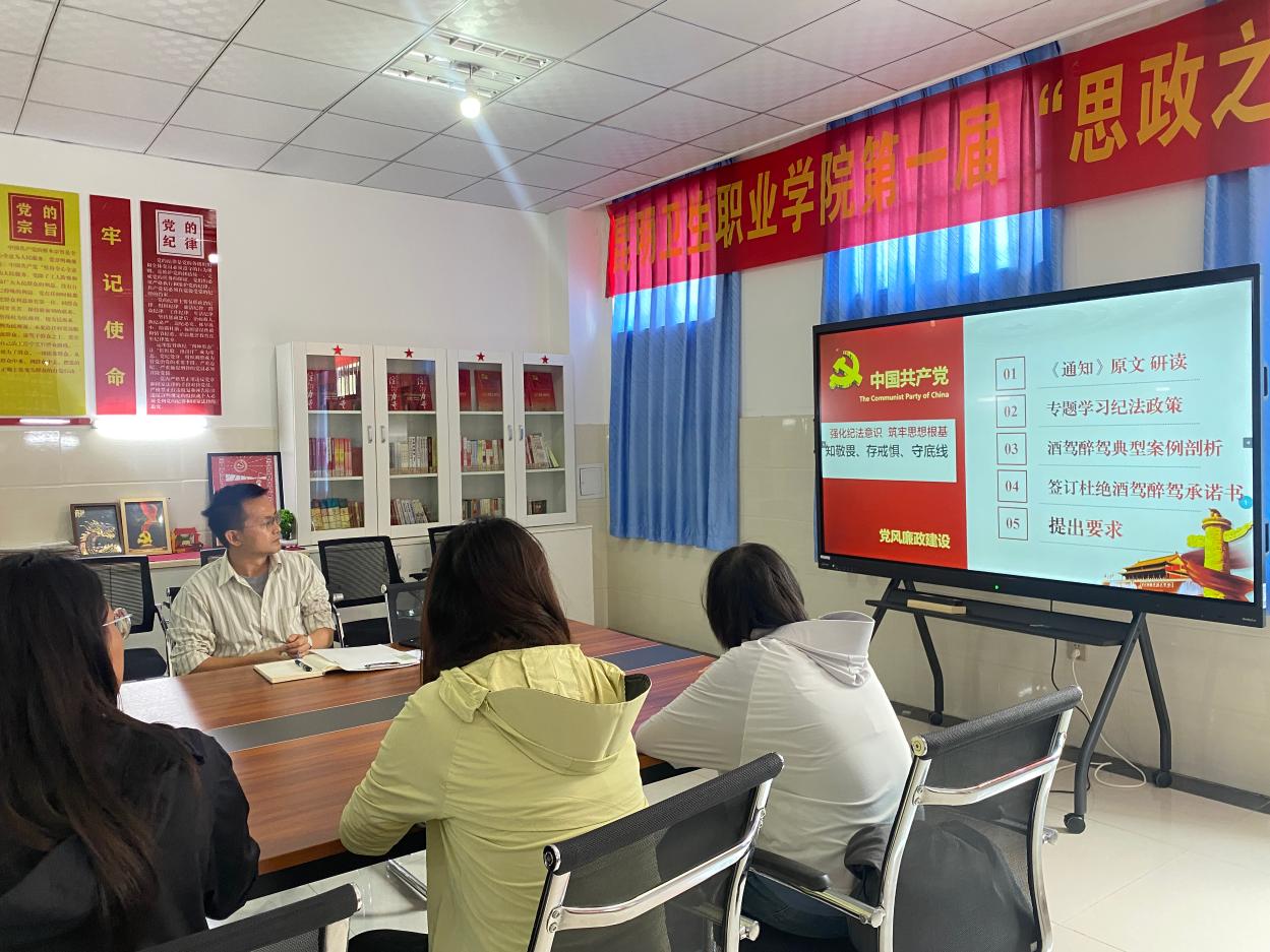 会上,支部书记围绕党组织对党员的纪律要求和对全体教师的警示教育双重目标,首先带领全体参会人员研读文件原文,详细介绍云南省委教育工委、省教育厅及学院党委印发的多项相关通知与方案,明确专项整治工作要求 —— 从党员纪律角度强调强化纪法意识、压实支部主体责任,从教师管理角度提出全面推进整改、严肃执纪问责等具体措施,要求全体教师(尤其是党员教师)必须知敬畏、存戒惧、守底线,深刻认识酒驾醉驾等行为的严重危害。
