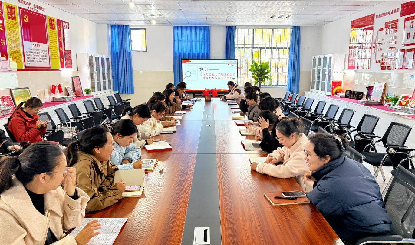 活动最后,全体教师签订《马克思主义学院党员教师网络发布行为承诺书》。大家纷纷表示,这份承诺书绝非形式主义,而是对自身网络言行的刚性约束与责任承诺,将以此次学习为契机,把规范用网要求内化于心、外化于行,在网络空间亮明党员身份、树立教师标杆,为构建风清气正的网络育人环境、推进网络强国建设贡献思政力量。