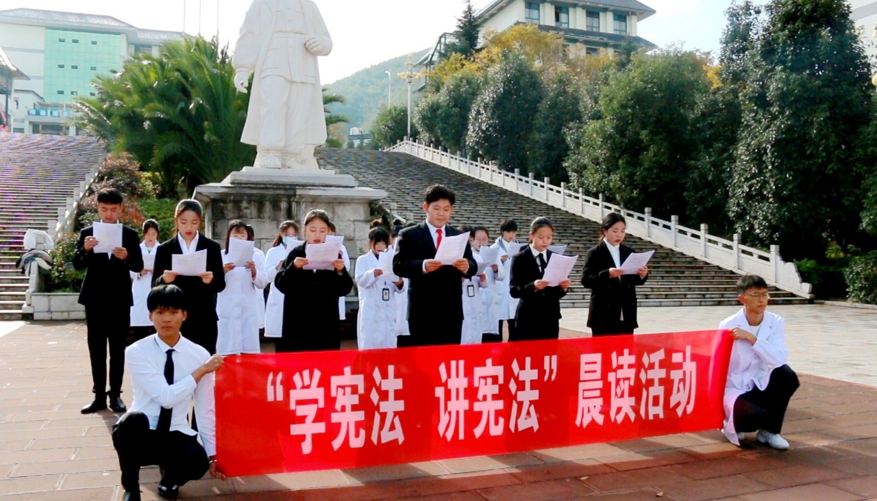 为认真学习贯彻习近平法治思想,深入贯彻落实党的十九大和十九届六中全会以及宪法学习宣传教育系列重要精神,今年会官网大学生宣讲团于2021年12月1日在白求恩广场举行建党百年暨“学宪法、讲宪法”晨读活动。