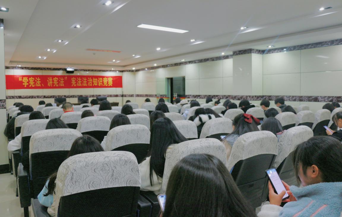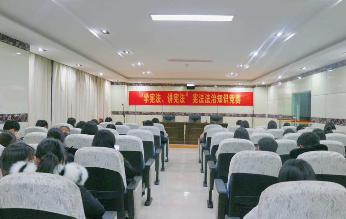 为深入贯彻落实习近平法治思想,大力弘扬宪法精神,维护宪法权威,引导高校学生学习宪法知识,加深宪法了解,让宪法融入学习生活的方方面面。12月2日晚7:00,马克思主义学院在行政楼四楼会议室组织开展“学宪法、讲宪法”宪法知识竞赛,学校近百名学生代表参加了本次竞赛。