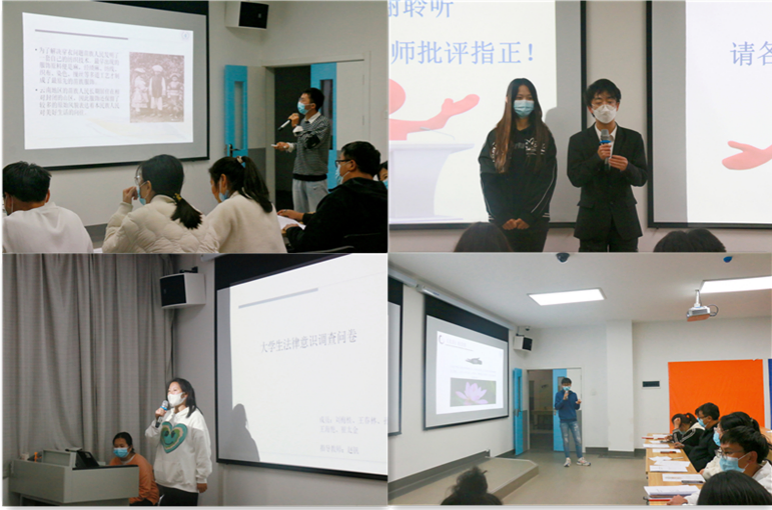 思政教师张晓婷指导的团队围绕“少数民族文化传承和发展”,以云南苗族服饰为主题开展一系列“苗族服饰知多少”的文化活动,宣传苗族服饰文化;思政教师聂元会指导的团队立足于思政课堂,从学生主体出发,探讨研究时事热点植入课堂的吸引力问题;思政教师赵钒指导的团队着眼于当代大学生法律意识问题,以采访调查为主,收集今年会官网大学生对法律的了解及应用情况;思政教师赵玲漫指导的团队则以读书会的形式,组织学生阅读经典散文《大学》,了解明德修身、至善等内涵,通过学习交流与讨论,结合医学生的职业道德与素质,帮助学生追求自我,提升自身道德品质。