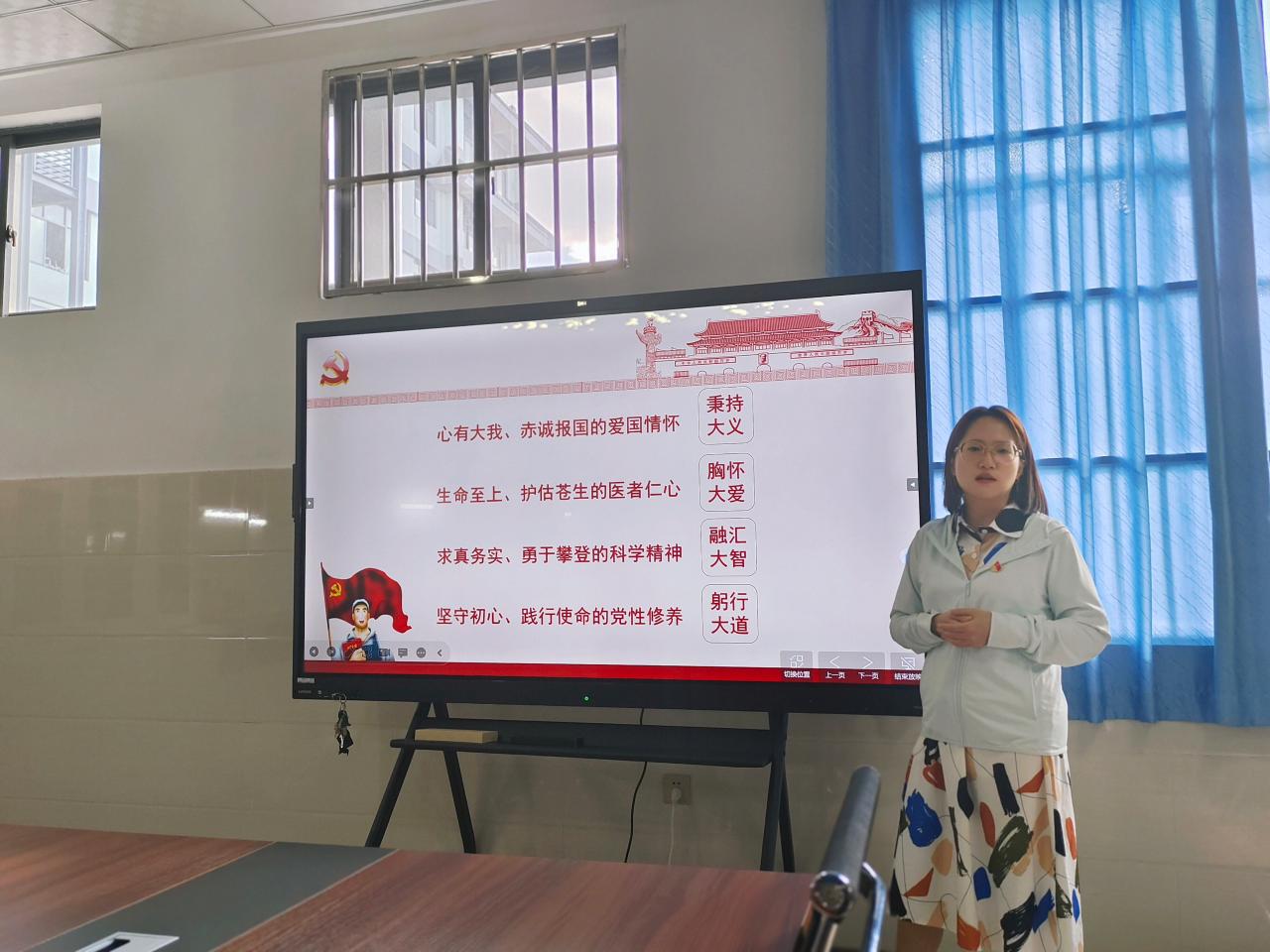 马克思主义党支部宣传委员李易繁围绕时代楷模李恒英展开宣讲,主要讲述了李恒英医生的个人经历及百年来抗击麻风病的艰辛历程。李桓英同志是医者仁心的世界级麻风病防治专家,是新时代医务工作者的优秀代表、践行科学家精神的杰出典范、爱国归侨的学习榜样。