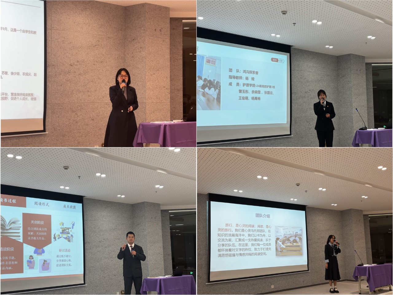活动以“沉浸式阅读体验”为主线,分为“经典品读”“心得分享”“思辨讨论”三大模块。10组师生团队通过PPT演示,生动展示了《傲慢与偏见》《我从未如此眷恋人间》《十八岁出门旅行》等10部经典著作的阅读历程和深刻感悟。经典品读环节,同学们以饱满的热情和真挚的情感深入剖析经典著作中的故事情节、人物形象和时代背景,结合个人经历和社会现实,分享了阅读带来的思想启迪和精神滋养。王超艳同学分享了对《十八岁出门旅行》中主人公成长经历的感悟,她提到:“这本书让我深刻领悟到成长之路布满荆棘,但每一次的挫折都是成长的契机,它教会了我要勇敢直面困难,珍惜每一次的经历。”李易繁老师则在分享《傲慢与偏见》时,深入剖析了人性的复杂与社会的偏见,引导学生们思考如何在现实生活中摒弃偏见,追求真正的平等与尊重。