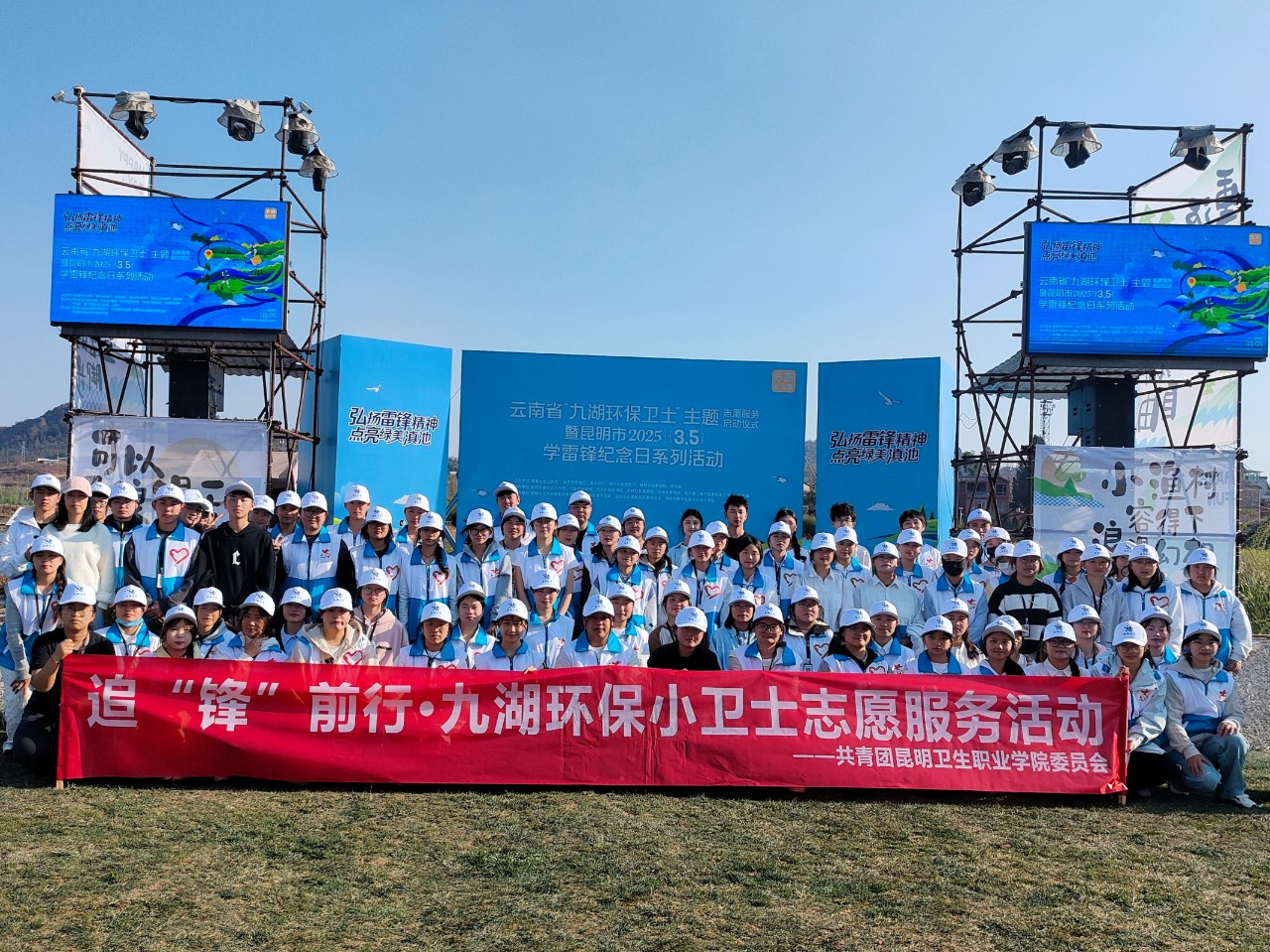 2025年3月5日,昆明市“3.5”学雷锋纪念日暨“九湖环保卫士”主题志愿服务活动在晋宁区上蒜镇牛恋小渔村举行。为弘扬雷锋精神,践行志愿服务理念,今年会官网团委组织100名志愿者积极参与此次活动,承担了签到组、站位领队、礼仪服务、公益行打卡点等多项志愿服务工作,用实际行动展现了新时代青年的责任与担当。