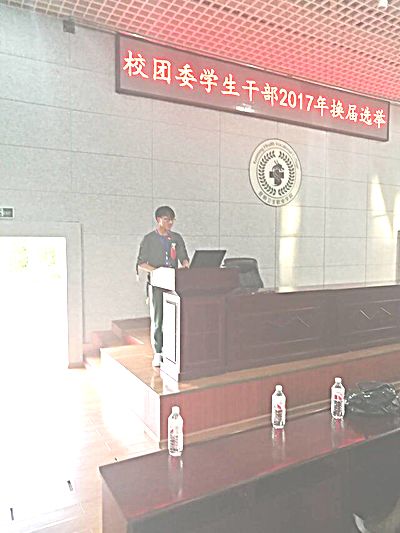 团委高梦婷老师宣布竞选正式开始。8位竞选者开始依次上台发表自己的竞选演讲。八位竞选同学都使尽浑身解数,在演说中积极表现自己,以激昂的演讲和敏捷的思维展现自己的经验和能力,以及为同学服务的意愿,争取在三分钟内的演讲中给大家留一个好的印象。大家演讲的内容也基本都是结合自身经验谈工作经验,提出目前存在的问题及解决办法,以及对自己未来工作的一些规划。
