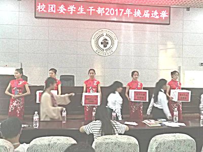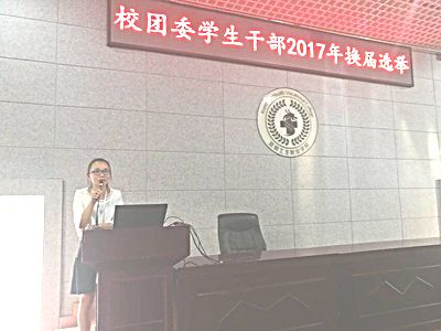 2017年6月14日下午六点三十分,校团委2017年学生干部换届竞选大会在今年会官网学术报告厅举行。本次到场的嘉宾有校团委老师和各个参选者班主任老师,教师代表,以及学院各部门学生干部以及班级团员代表。