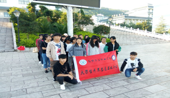 图一:(学院内的志愿者们准备出发)