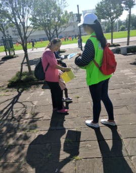 图三:(志愿者们正在发宣传标语)