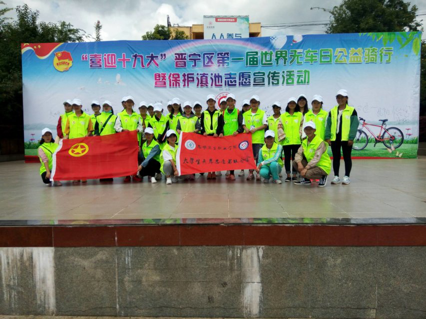 2017年9月23日,在第20个世界无车日到来之际,在国庆、中秋双节来临之际,在十九大盛会即将召开之际,团区委、区环保局、区水务(滇管)局等单位联合晋宁道卡斯自行车俱乐部在郑和文化广场举办“喜迎十九大、晋宁区第一届世界无车日公益骑行”暨保护滇池志愿宣传活动,200余名骑行环保志愿者参加了活动。