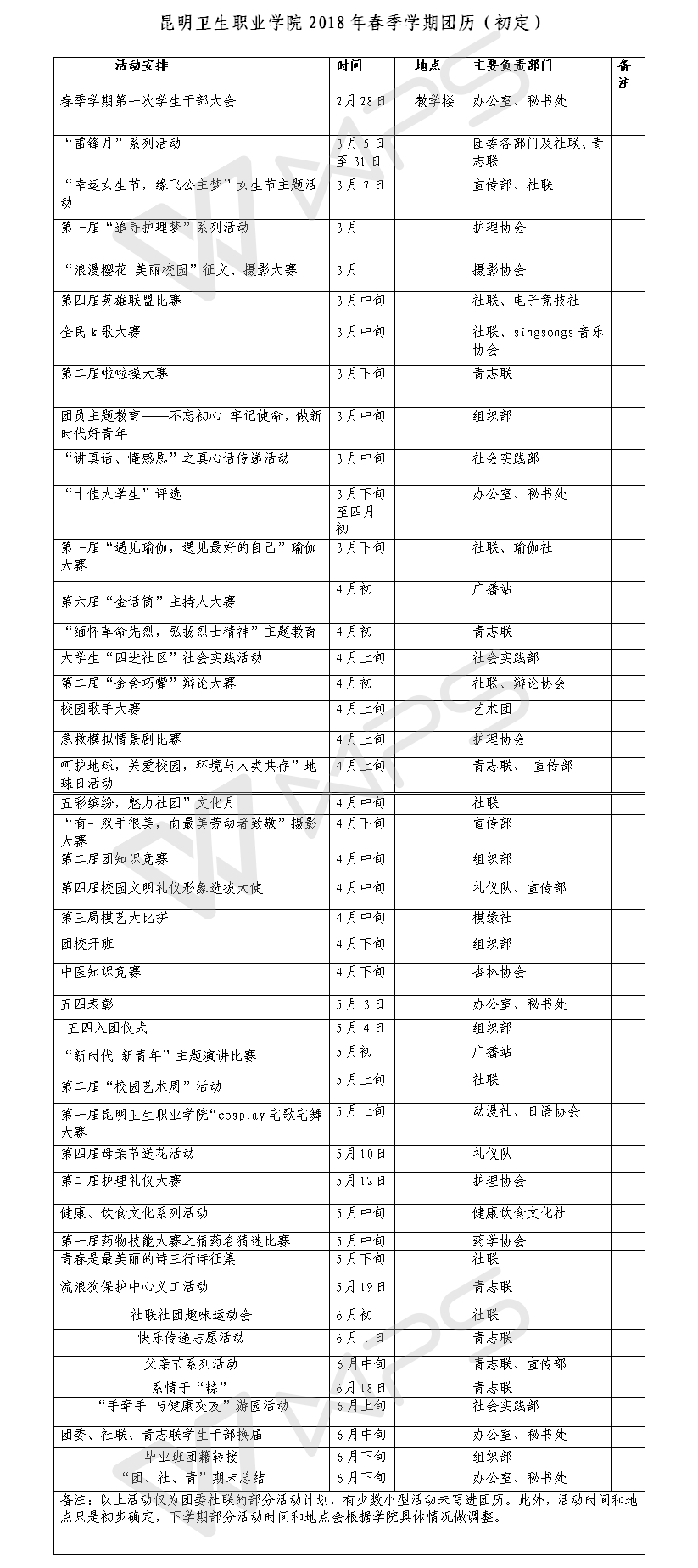 今年会官方网站2018年春季学期团历(初定)