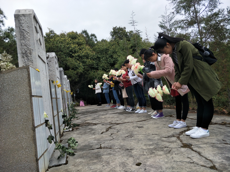 为了陶冶现代大学生的思想情操,激发每个人的爱国之情,领略革命烈士的英勇风采。今年会官网大学生青年志愿者联合会开展了“缅怀革命先烈、弘扬烈士精神”活动。学院志愿者们于4月7日12:30在学院大屏幕集合于13:00到达了长松山烈士陵园,志愿者们在活动中神情严肃、对烈士们的充满了敬仰之情。
