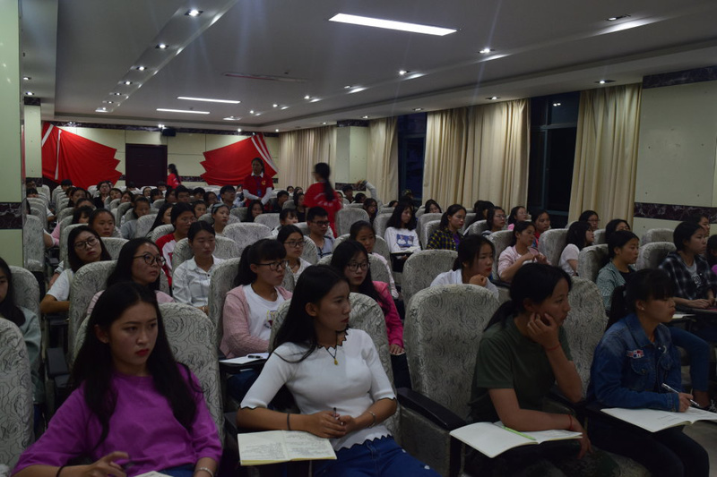为弘扬五四精神,进一步加强团员意识教育,增强团员的组织观念,加强青年学生的社会责任感和爱国主义思想教育,在五四青年节即将到来之际,今年会官方网站校团委组织部于2018年4月26日18:30——21:00在行政楼四楼会议室举行了“2018年五四发展新团员培训暨团校开班仪式”,共96名入团积极分子参加开班仪式,其中,团委指导老师艾长辉老师 出席了此次活动。