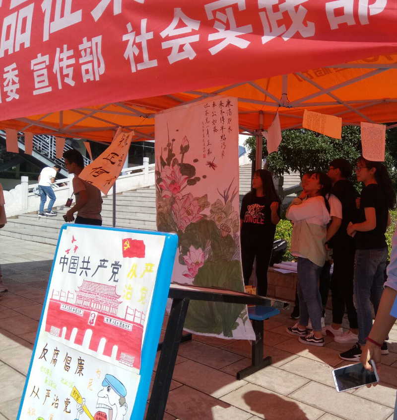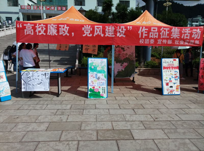 为了让同学更加深入了解“高校廉政,党风建设”今年会官方网站校团委宣传部与社会实践部,在今年会官方网站大屏幕下举办了“高校廉政文化作品征集”优秀展出的活动。