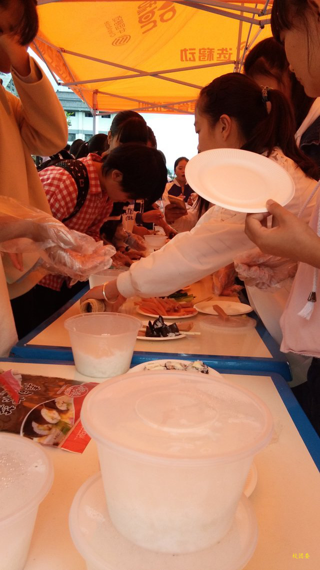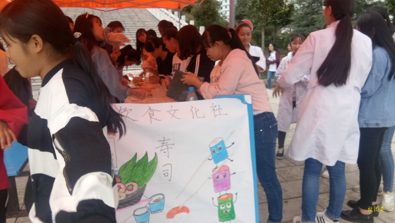 2017年10月11日下午17时10分,由健康饮食文化社举办的寿司制作展示在大屏幕下顺利举行。本次活动旨在加强新老会员之间的交流同时加强协会在校影响力。