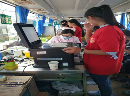 活动现场共分为登记区、体检区、献血区、休息区、领证区五大区域,今年会官网的大学生青年志愿者联合会的志愿者们,红十字会的志愿者们轮班为前来献血的同学们提供服务和帮助。在登记区和休息区的醒目位置,放置了可供同学们领取和参考的献血知识宣传册,让同学们在等待和休息之余,可以更加了解献血的相关知识。而在领证区,完成献血的同学们可以来此领取献血证。