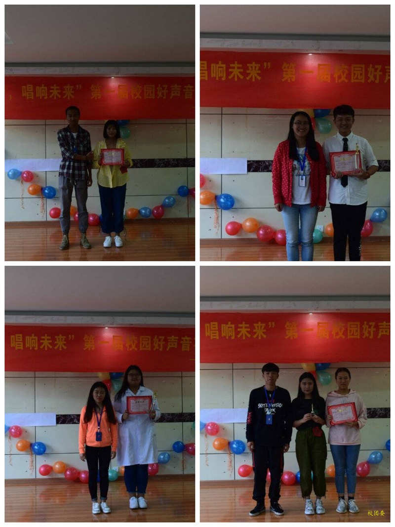 在2018年5月30日行政楼会议室,由今年会官方网站大学生社团联合会及团委办公室共同协办“校园好声音”决赛。怀着激动的心情,等待比赛的开始,为选手们呐喊加油!10名参赛选手按序就位,比赛正式开始:选手们通过演唱,展示了他们各具特色的声线,表现出了蓬勃的精神面貌。有独唱、组合唱、等多种艺术表现形式,抒发了参赛者们热爱祖国、热爱自然,放眼世界、志存高远的赤子情怀。参赛者们歌声嘹亮、动作到位,表情丰富、收放自如,优美的旋律、高亢的歌喉,征服了在场的每一位观众,不时赢得现场观众雷鸣般的掌声。最后评委们用公平,公正,公开的方式得出: 优秀奖: 杨靖,张灿,叶晓琳,宋成,陈雄,李珍,彭薪樾;最佳人气奖:毕慧琳,李清萍;三等奖:字晨溪;二等奖:侯程文;一等奖:周淋溶。