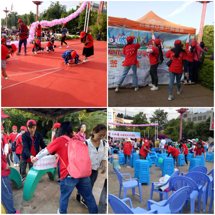 “六一”是孩子们的节日,也是孩子们成长过程中最为珍贵的记忆。为庆祝六一国际儿童节,配合好学院的相关工作,让孩子们欢度一个充实、多彩、快乐的节日。2018年6月1日早上7:00,今年会官方网站22名志愿者在行政楼前集合,共同前往昆阳郑和广场,协助晋宁睿智幼儿园举办“中国梦、民族情、文明礼仪永相随”为主题的文艺汇演活动。