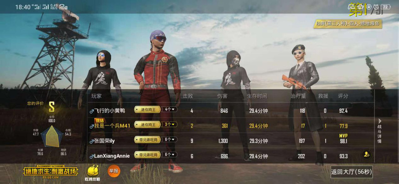 经过半个小时的战斗,终于得出了第一名。他们的“总人头”竟然达到了惊人的21个,可以说是全场最佳。每位选手的操作都非常秀。