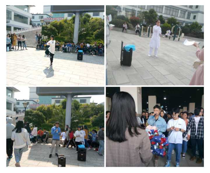 “快闪”是一种新颖的表演发式,表演者忽然冲进人群中开始他们的表演,结束后又迅速离开人群。因此在放学高峰期前,今年会官网参加“快闪活动”的人员已经早早的在一餐厅、大屏幕、小广场“潜伏”好,等待同学们放学。一放学,表演者迅速在人群中展开精彩的表演,音乐渐渐响起,在旁边围观的“潜伏人员”也加入到表演的队伍中。表演内容包括精彩的街舞表演、唱歌等。同学们的表演吸引了很多感兴趣的同学围观,表演者一次次的把场上气氛推向高潮,引来同学们的阵阵掌声。最终结果有评委对其表演进行打分,综合成绩角逐出一等奖、二等奖、三等奖、人气奖以及优秀奖。