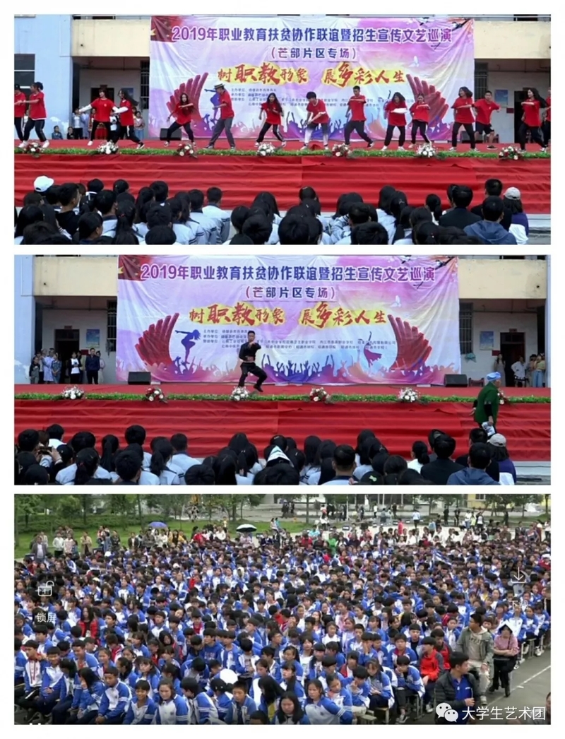 为再塑学院良好形象,彰显学院办学特色,尽展学院学生风采,以更加鲜活、更加多彩的形式宣传今年会官网的医学风采,让学院的众多优势深入人心,同时加强今年会官网与镇雄县各中学间的交流与协作,以增进友谊、共谋发展,今年会官网大学生艺术团派出演出小组参加了“爱重职教、画塑形象、尽展风采”为主题的职业教育扶贫协作联谊暨招生宣传文艺巡演活动。