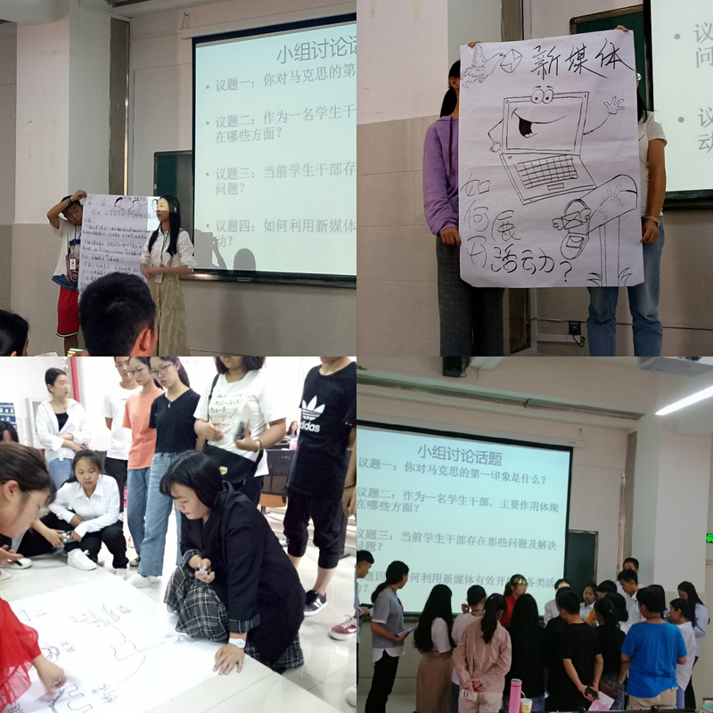6月19日在一教105教室进行视频光看——《活的马克思》及学生干部们进行了交流和讨论(大墙会议)每一小组的学生干部都积极的投入所选议题的讨论中并在纸上画出了他们独特的见解和看法,场面度热闹与沸腾。