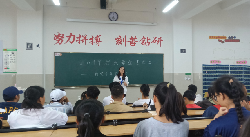 秋风送爽,金桂飘香。随着新学季的开始,大学生艺术团已经进入了一批新的鲜血,为了促进新老成员之间的交流与沟通,让艺术团的各项工作顺利进行,大学生艺术团于2019年9月17日下午17:30在一教201举行了“2019届新老成员见面大会”全体艺术团新老成员参加此次会议。