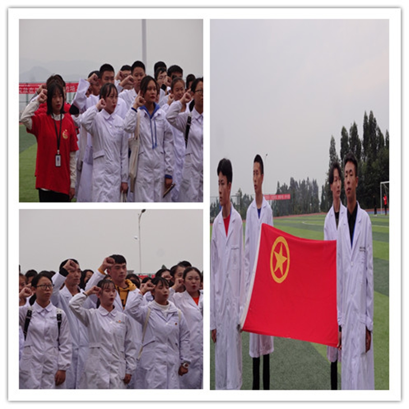 学院团委各委员、各班团支书、组织委员、宣传委员、团委全体学生干部在会场肃立,一同迎接鲜艳的五星红旗。