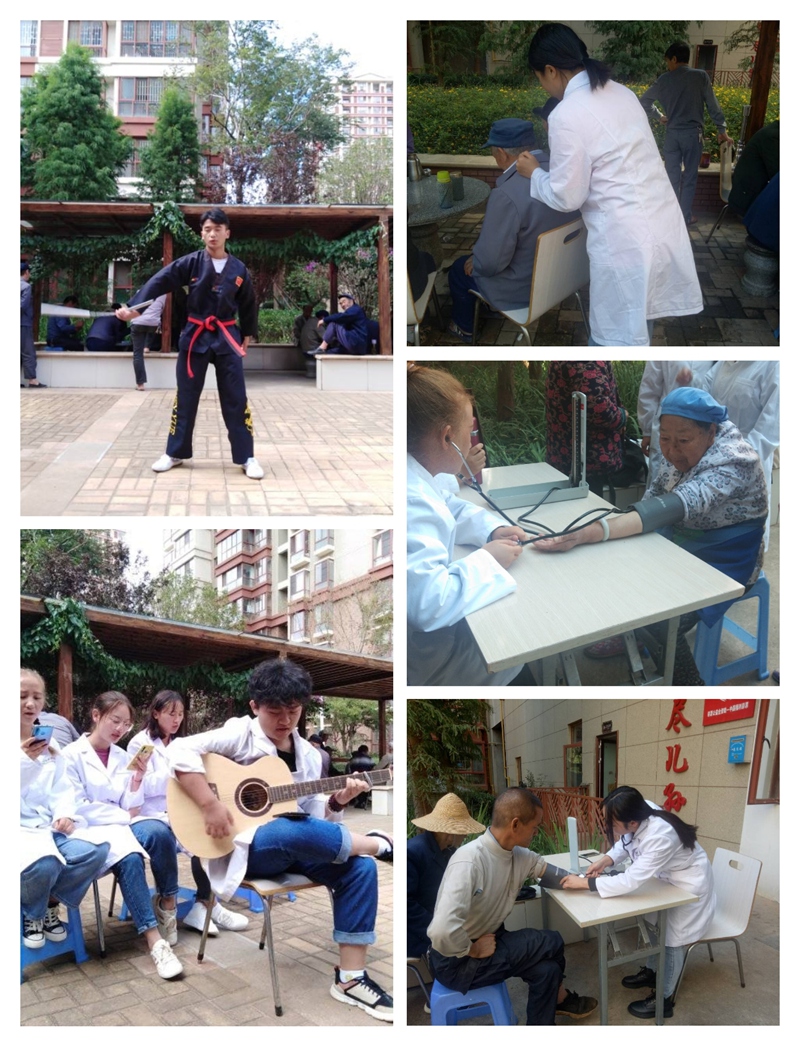 参与人员在明确分工后便各司其职,有量血压的、有按摩的、以及表演节目的。在量血压的过程中我们的成员耐心的向老人们讲解一些于血压相关的知识,告诉他们一些关于高血压和低血压的注意事项。并且向他们普及一些健康的饮食和生活方式。按摩组的同学在按摩的过程中用自己的一些专业知识解决老人们的一些疼痛,而且我们还特地准备了一些节目,其中印象最深的是歌曲“父亲”希望时光慢些吧!不要再让你变老了我愿用我一切换你岁月长流。希望大家都常怀感恩之心。爱护自己的父母。正如三合村养老服务中心的对联:敬爱无亲疏天下高龄皆父母,老来不孤独人间晚辈尽儿孙。