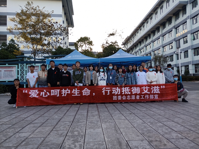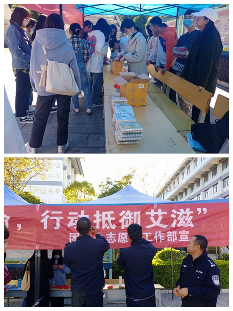 预防或如何看待艾滋病感染者等的相关问题。答题后赠送他们参赛小礼品,也让他们呼吁身边朋友亲属提高防艾意识,正视艾滋病感染者。11月20日的活动内容主要是发放红丝带和在宣传布标上签名。