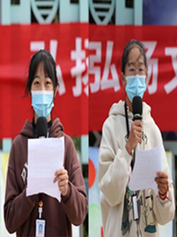 第三项,团委会广播站郭思祎同学,李翔同学宣读倡议书,并表示在弘扬雷锋精神、当好雷锋传人上努力走在前列,从我做起,从身边做起,让成千上万个雷锋成长起来,让雷锋精神永驻校园。