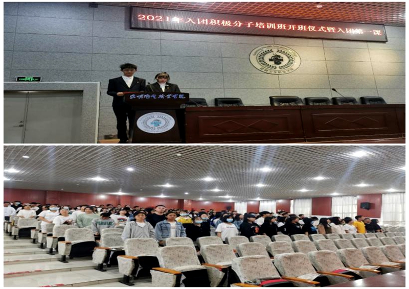 为进一步提高入团积极分子的思想水平和政治素质,在学习生活中发挥模范带头作用,坚持党建带团建,充发挥红色教育资源作用,让广大入团积极分子通过团课集中学习的形式增强“四个意识”、坚定“四个自信”、做到“两个坚决维护”。2021年4月13日学院团委组织部在学术报告厅举行“入团积极分子培训开班典礼暨入团第一课”的主题活动,参加本次活动的成员有:团委书记雷红梅老师、团委组织委员艾长辉老师,团委组织部全体成员及全院入团积极分子。