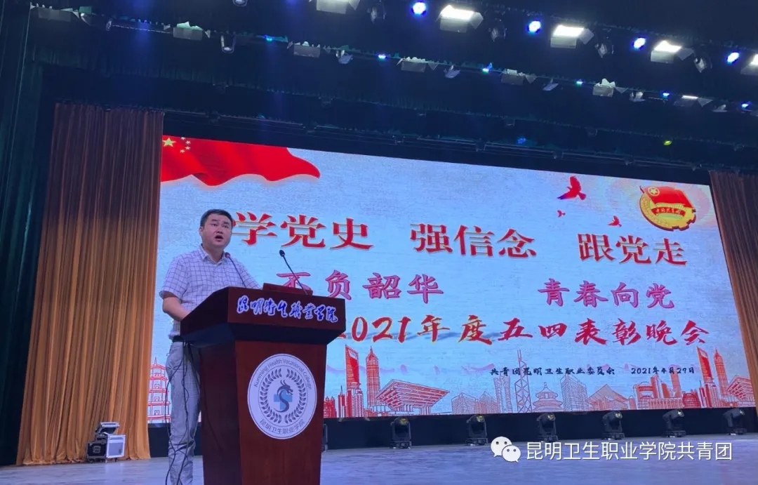 党委副书记张晓刚同志代表学校党政向获得表彰的集体和个人表示热烈的祝贺,向辛勤工作的共青团干部和青年工作者表示衷心的感谢,向全校团员青年致以诚挚的问候和良好的祝愿。他指出过去的一年,校团委在学校党委的坚强领导下,紧紧围绕学校党政中心工作,聚焦主责主业,凝心聚力开创学校共青团工作新局面,为学校的发展和建设做出了应有贡献。在伟大的中国共产党成立100周年、五四运动102周年之际,他寄语昆卫青年:一是坚定理想信念,从党史学习中激发信仰、获得启发、汲取力量;二是锤炼品德修为,在矢志追求中增强定力、明辨是非、培根铸魂;三是勇于开拓奋进,在时代进程中实学实干、敢为人先、追求卓越。